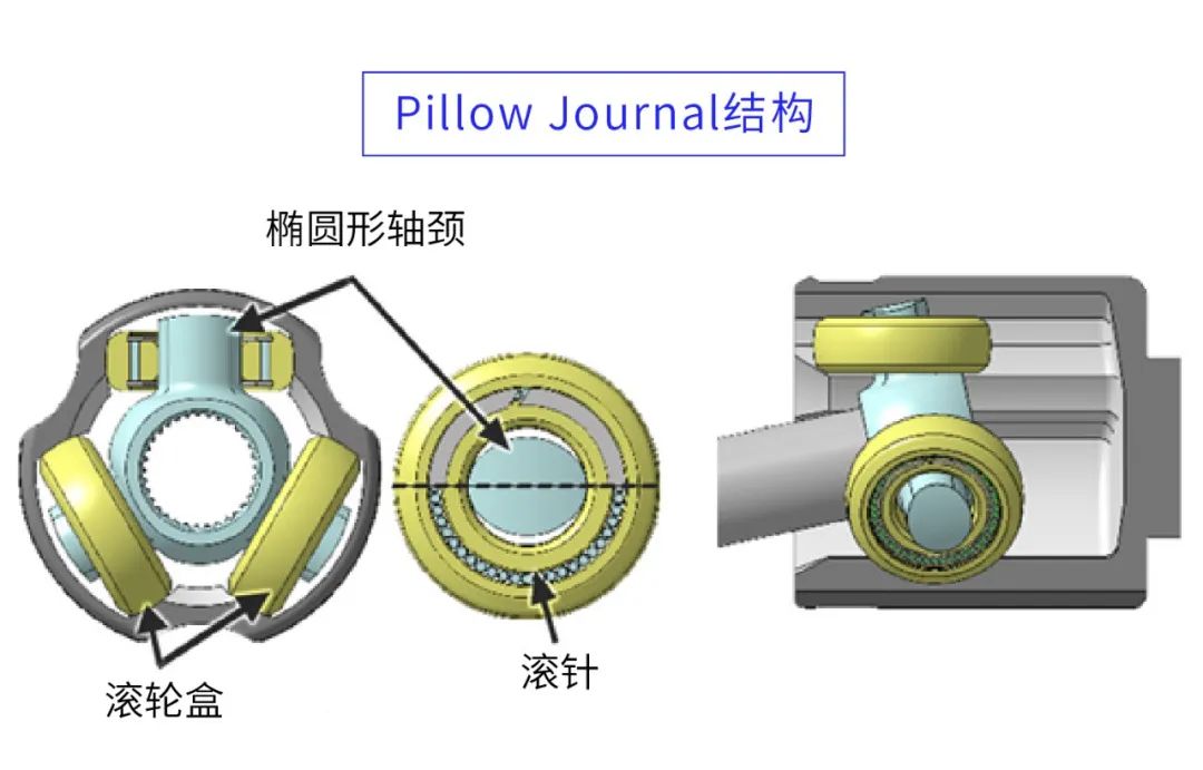 “PTJ”是一種移動(dòng)型CVJ(等速萬(wàn)向節(jié)),它采用了NTN獨(dú)有的“Pillow Journal結(jié)構(gòu)”,即使工作角度比較大的時(shí)候也能抑制內(nèi)部組件滾輪盒的傾斜。
