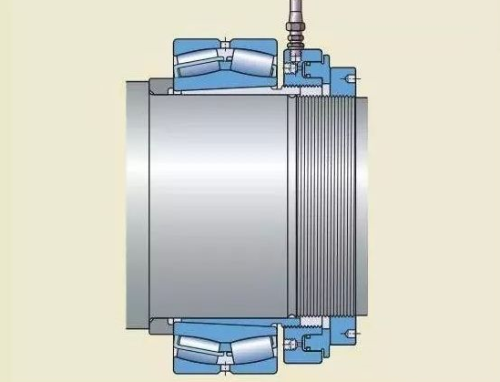 注油法的工作原理是:液壓油在高壓下通過油孔和油槽,注入軸承和軸徑之間的配合面,形成一層油膜。油膜將配合面分開,使得配合面之間的摩擦大幅減少。這種方法通常用于直接把軸承安裝在圓錐形軸徑上的情況。必須的油孔和油槽應(yīng)是整體軸設(shè)計(jì)的一部分。如果緊定套和退卸套,已加工有油孔油槽,這種方法也可用于將軸承安裝在緊定套或退卸套上。